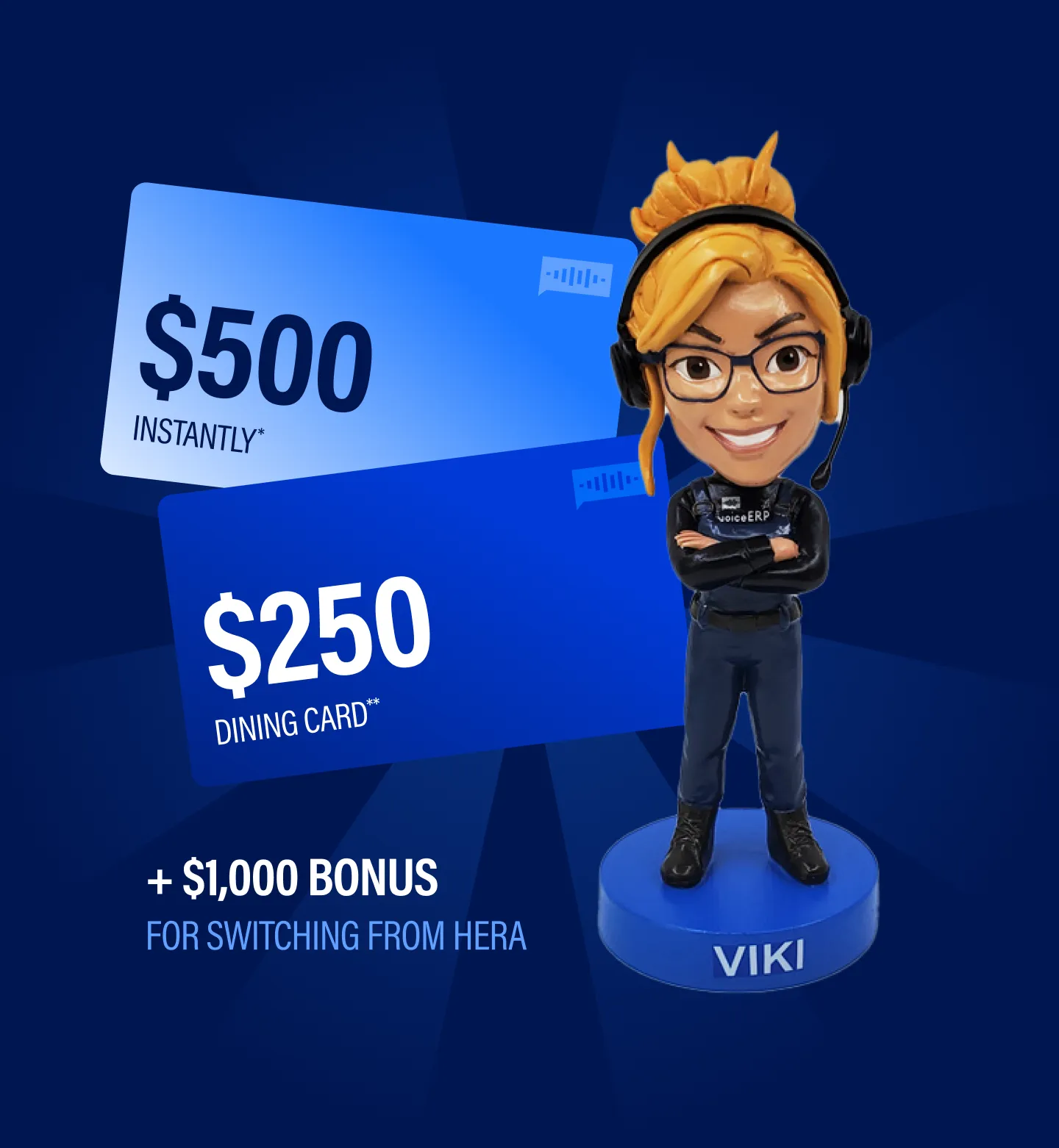 Pick up your Viki Chip from a voiceERP rep at Ignite. Scan the code to see if you’re an instant $500 winner. Or just take the demo in our sweet Executive Suite with Founder Nick Bashour and leave with a $250 Dining Card. Drink it in while supplies last!